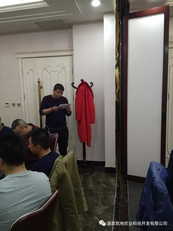 酒泉凱地農(nóng)業(yè)總經(jīng)理薛治軍先生代表公司向全體員工及家屬致新春賀辭:大家過年好!在這新春佳節(jié),美好的日子里,酒泉凱地農(nóng)業(yè)、甘肅酒玉種業(yè)隆重舉行“2017年度優(yōu)秀員工表彰大會及新春團(tuán)拜會”,我代表公司向所有同事及家屬拜個晚年,祝大家新春快樂,身體健康,工作順利,闔家歡樂。