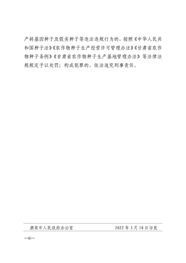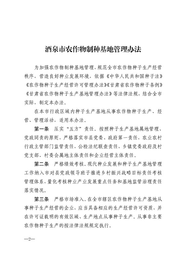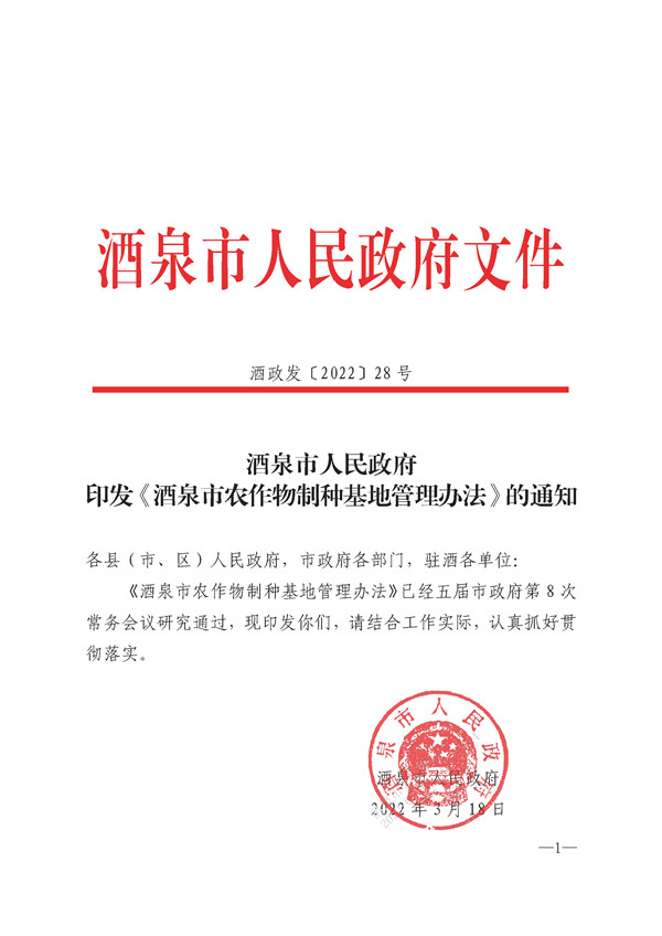 酒泉市人民政府印發(fā)《酒泉市農(nóng)作物制種基地管理辦法》的通知