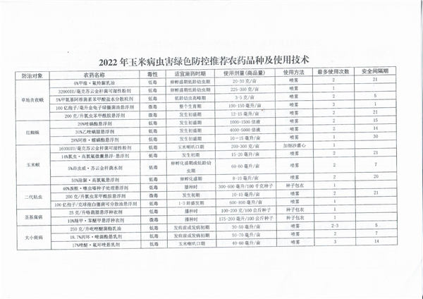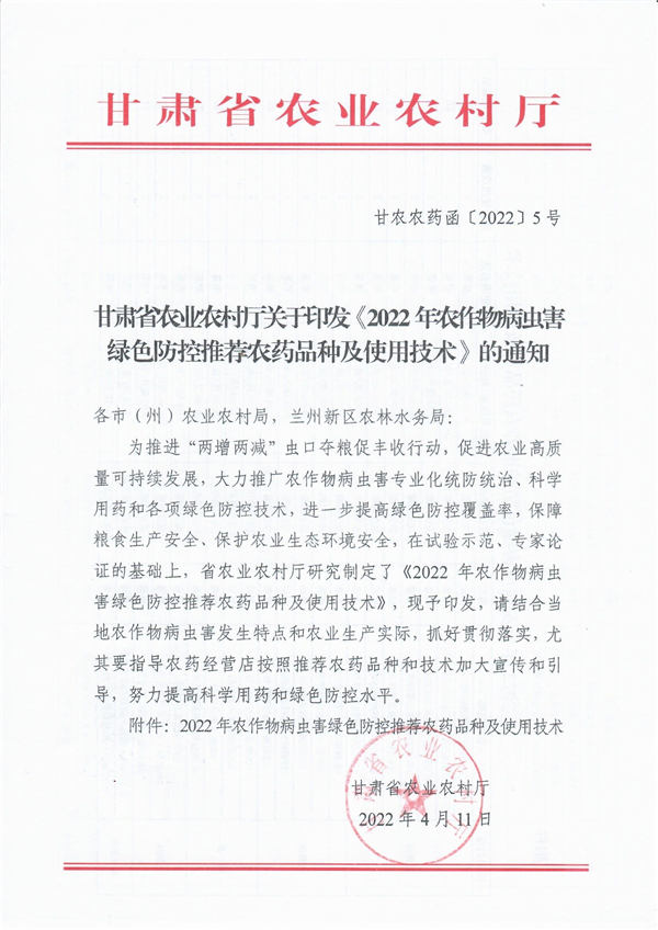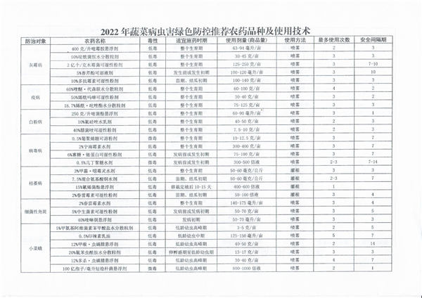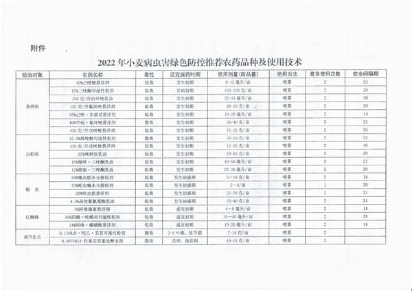 《2022年農(nóng)作物病蟲害綠色防控推薦農(nóng)藥品種及使用技術(shù)》的通知